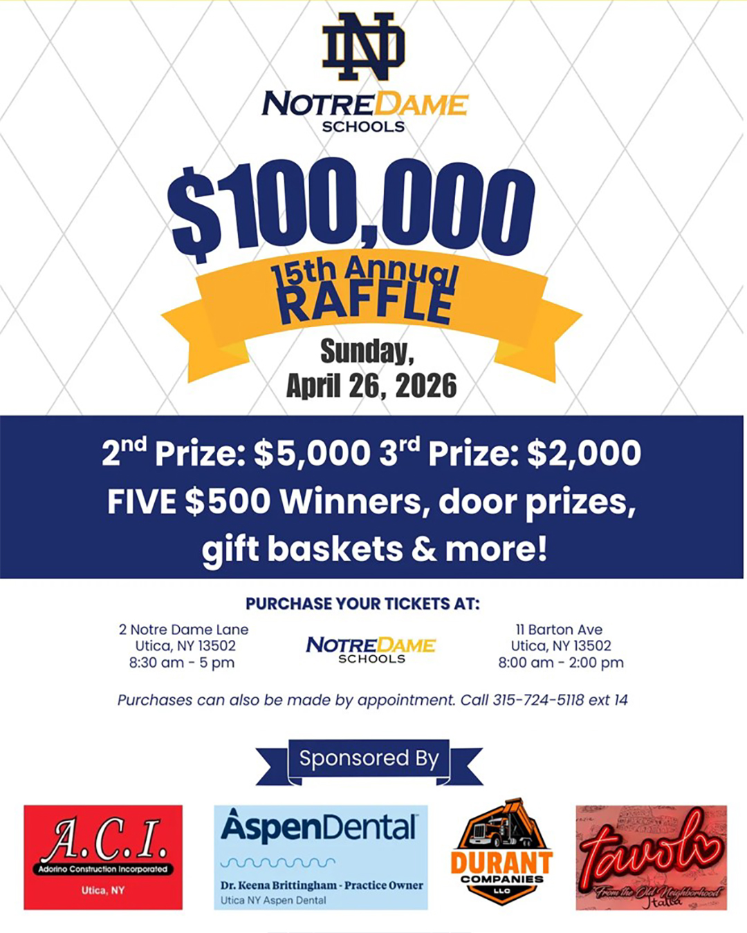 Tickets are $100 on sale at Notre Dame Jr/Sr High School