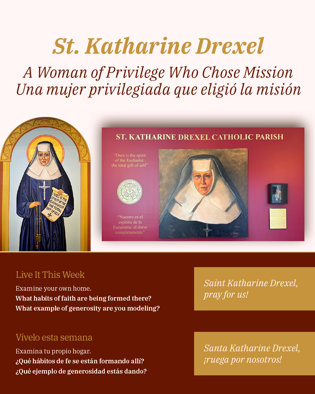 Live It This WeekExamine your own home. What habits of faith are being formed there? What example of generosity are you modeling? Saint Katharine Drexel, pray for us!