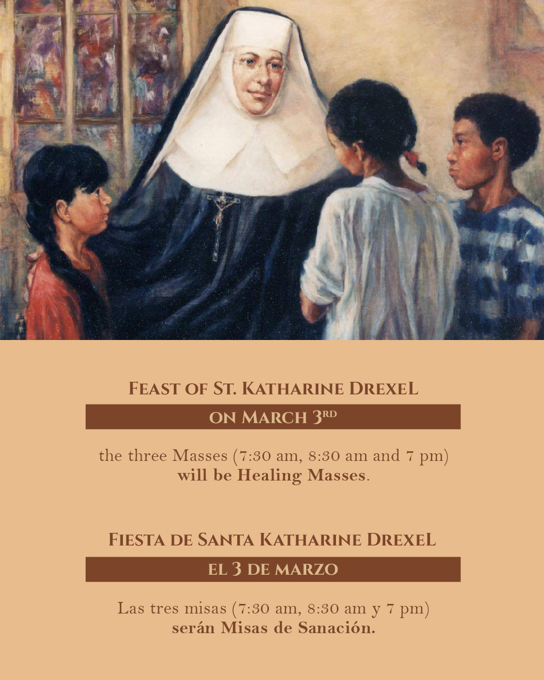 March 3rd the three Masses (7:30 am, 8:30 am and 7 pm) will be Healing Masses. - - - 3 de marzoLas tres misas (7:30 am, 8:30 am y 7 pm) serán Misas de Sanación.