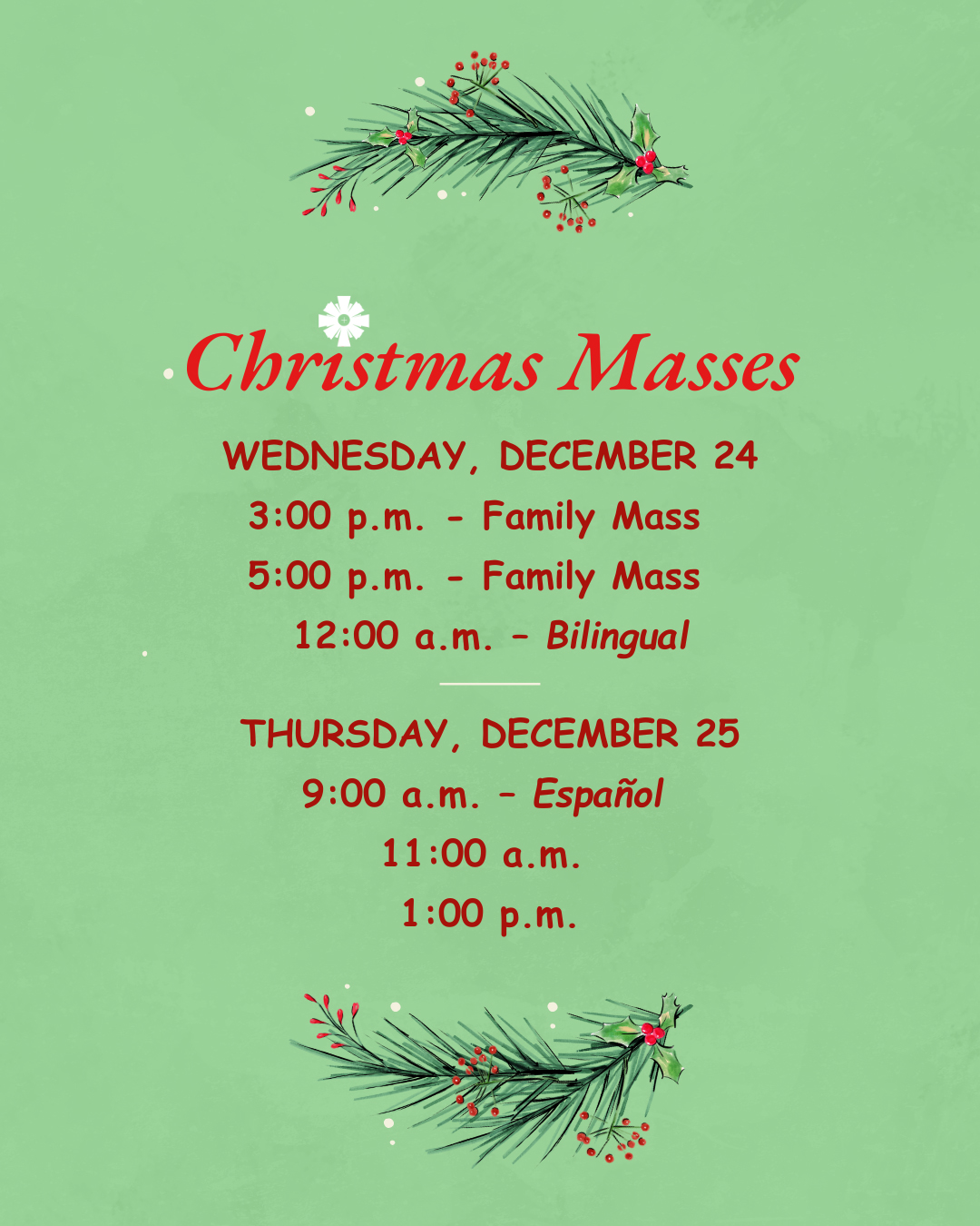 Mass intentions will be offered at 6:30 am and 10:00 am, with confessions available every Saturday or by appointment.