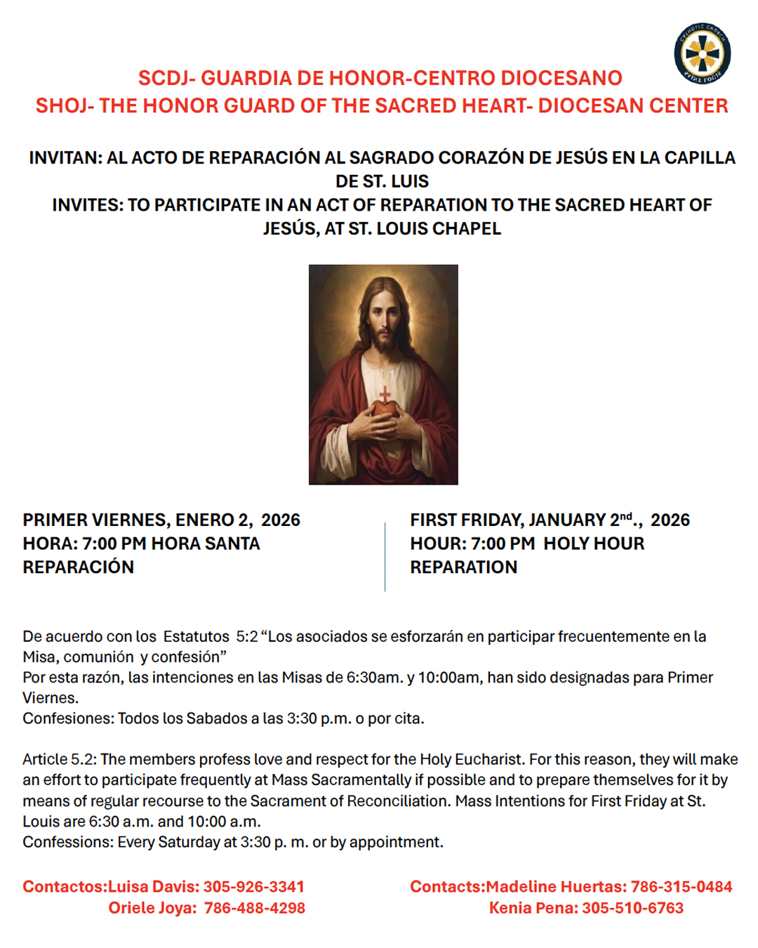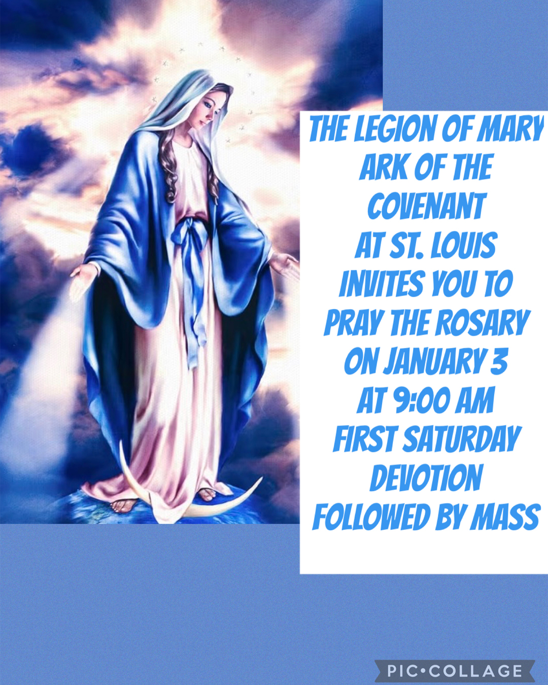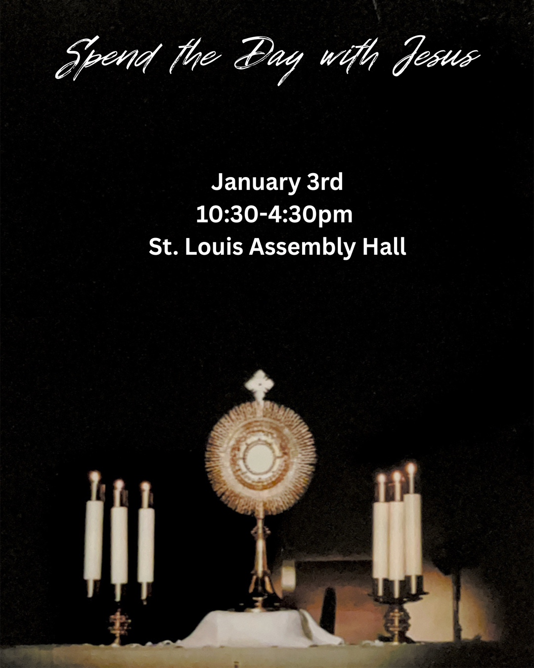 First Friday, January 2, 2026, at 7:00 pm during Holy Hour in the St. Louis Chapel.