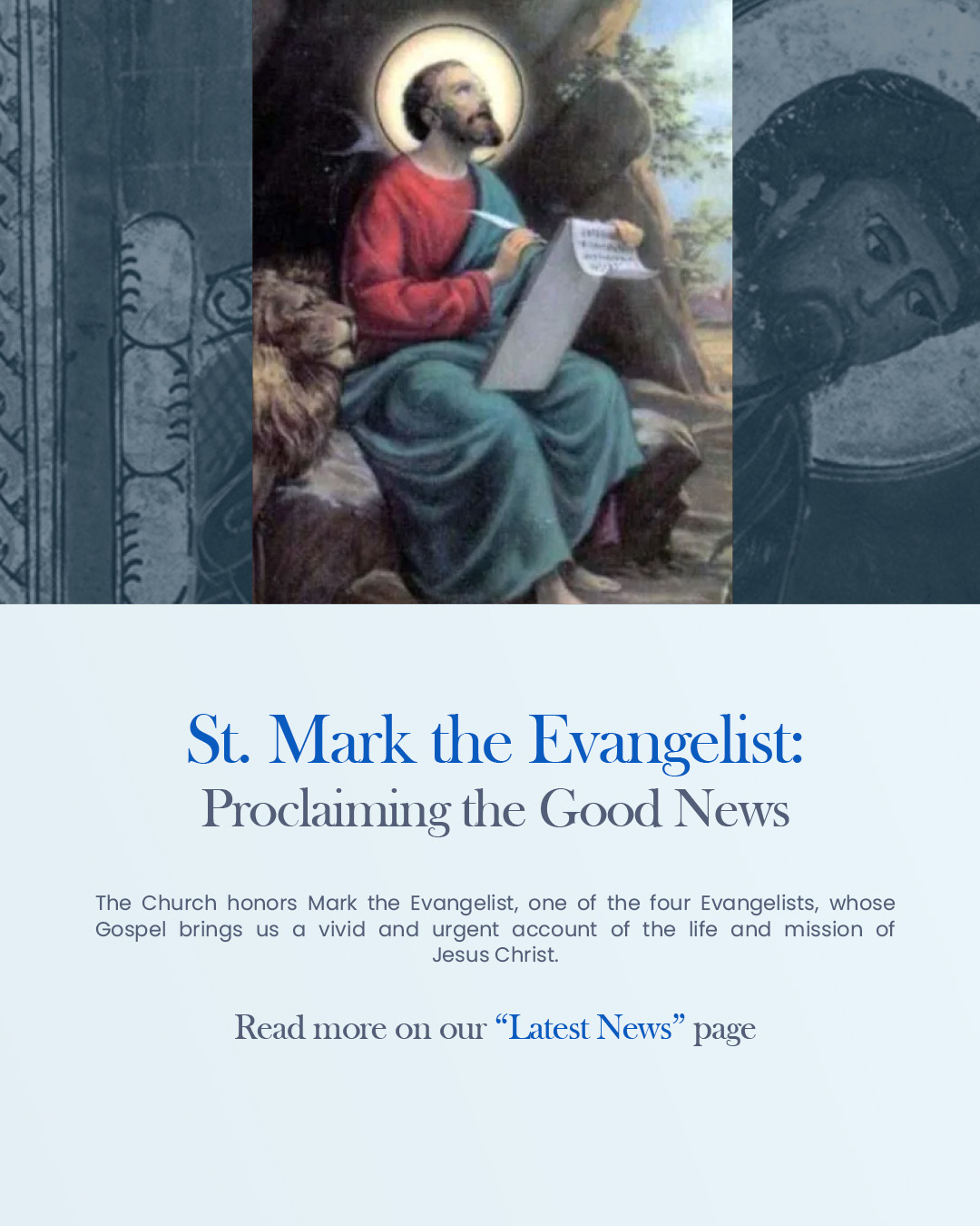 The Church honors Mark the Evangelist, one of the four Evangelists, whose Gospel brings us a vivid and urgent account of the life and mission of Jesus Christ.